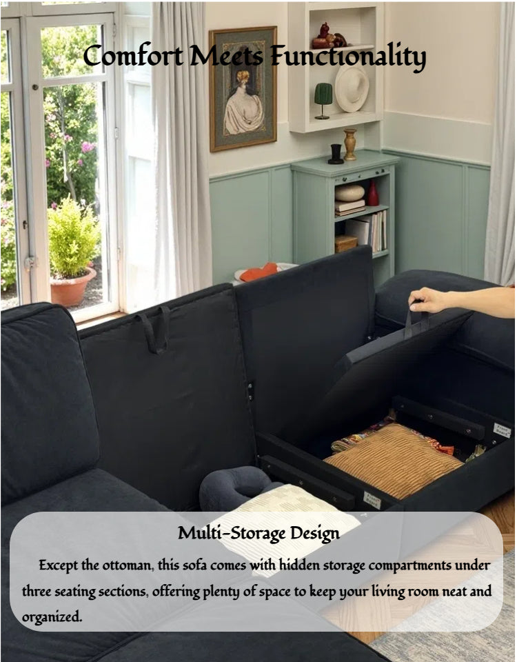 105.5" Upholstered L-Shaped Sectional Sofa with Storage – Modern Deep-Cushion Fabric Couch, Space-Saving for Apartments & Living Rooms