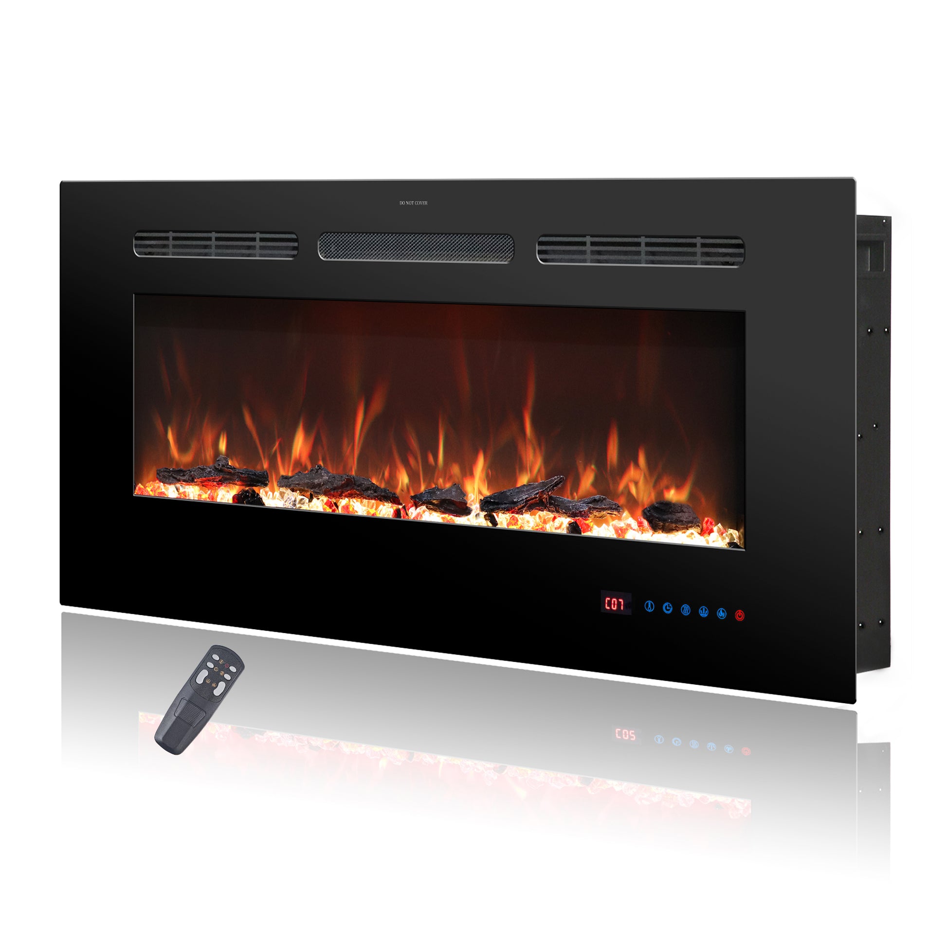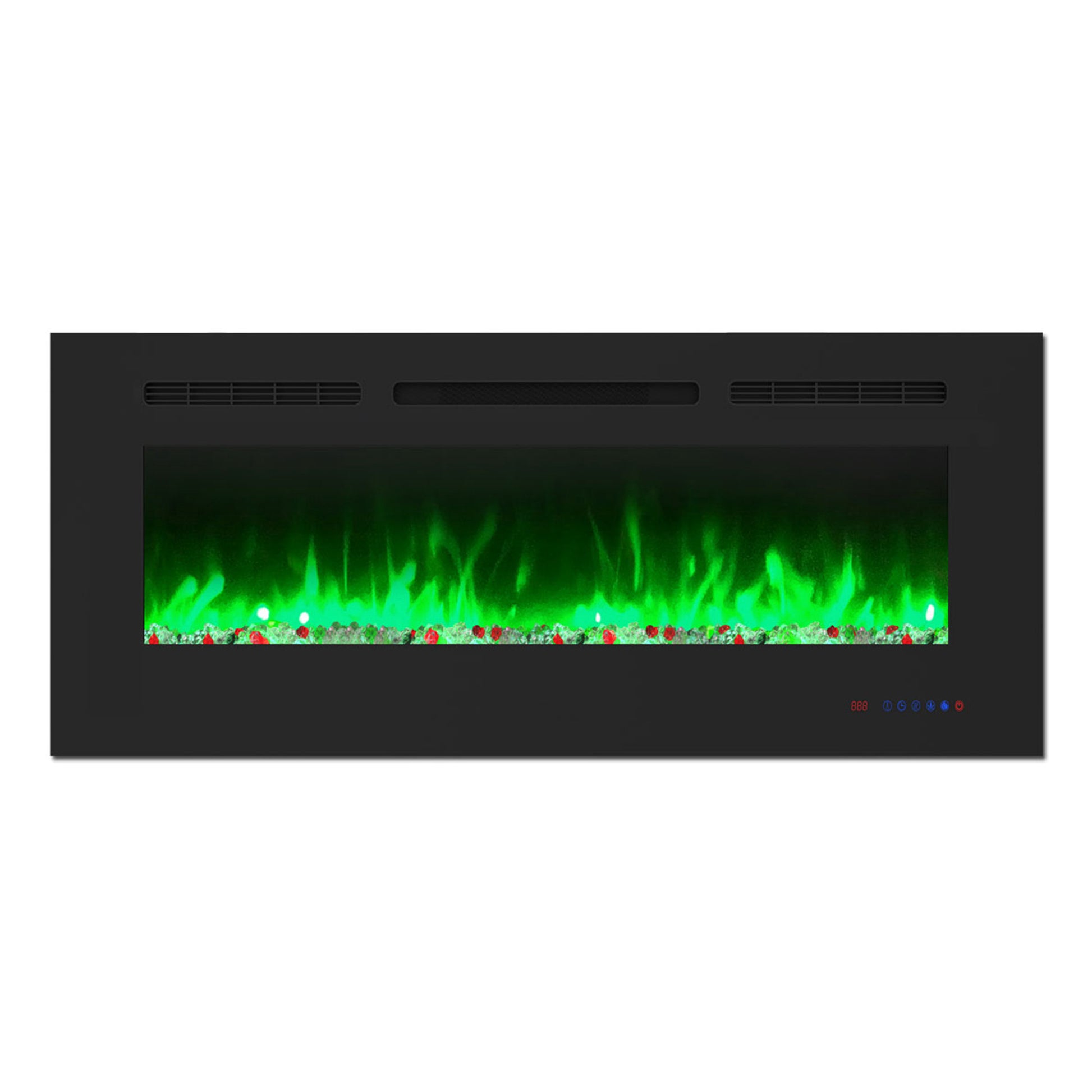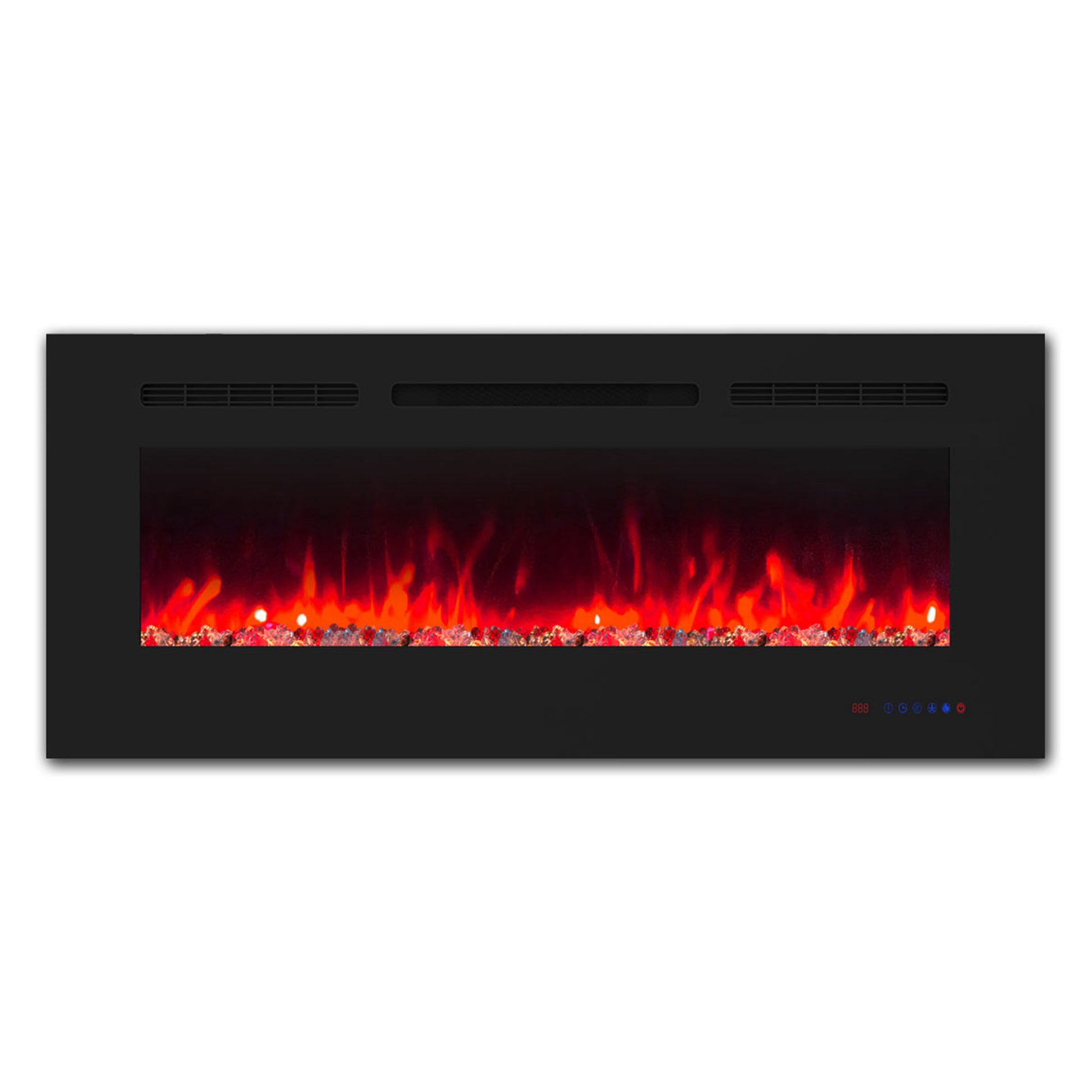 60" White Label electric fireplace supports recessed/wall mounting, with remote, touch screen, 13 flame colors, base lights