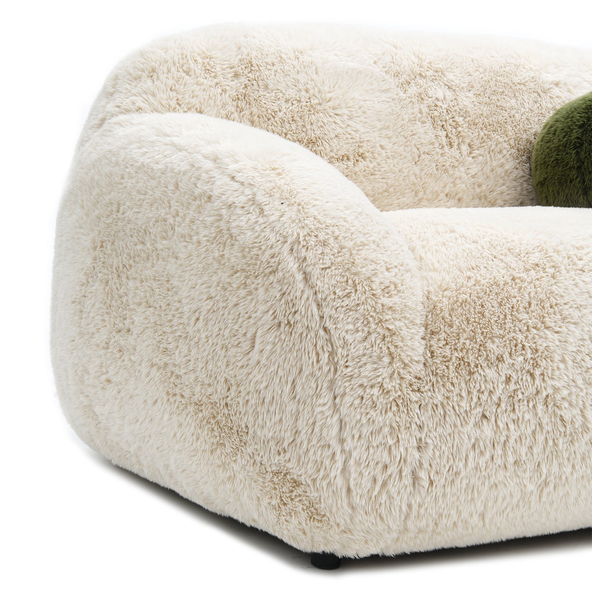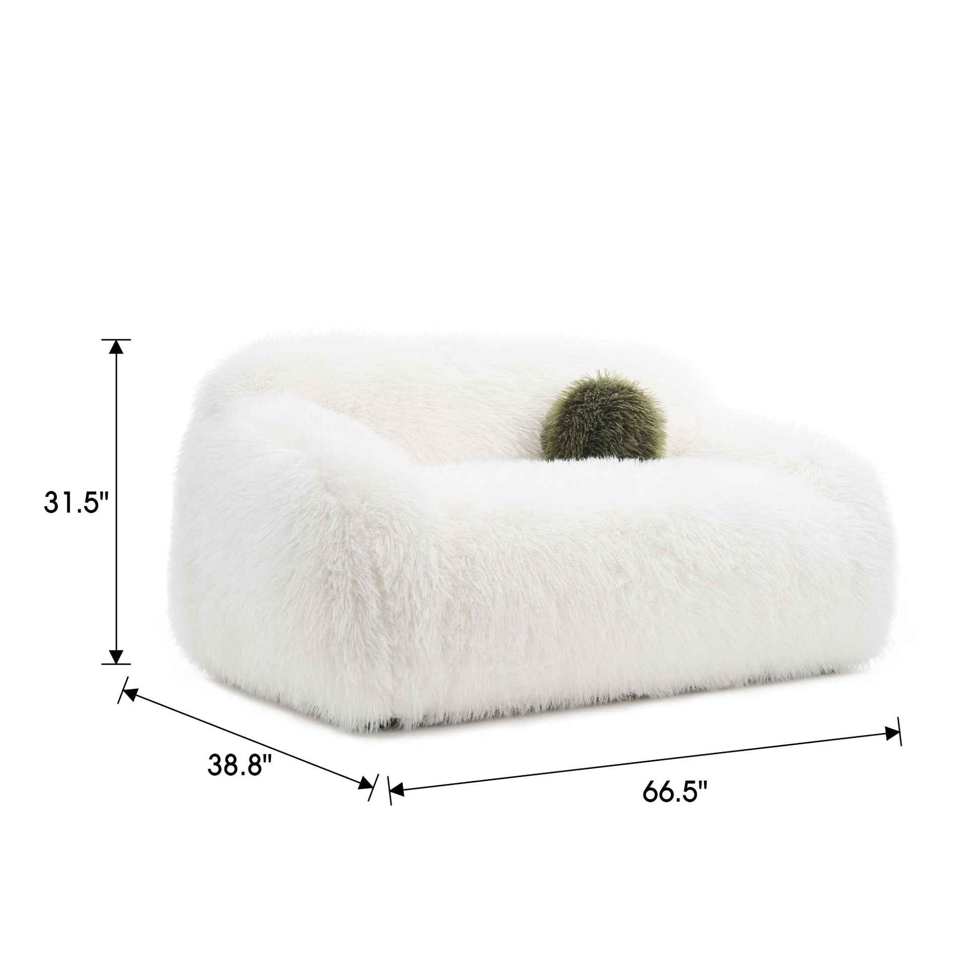 66 Inch Darwen Modern Faux Fur Loveseat with Ball Pillow