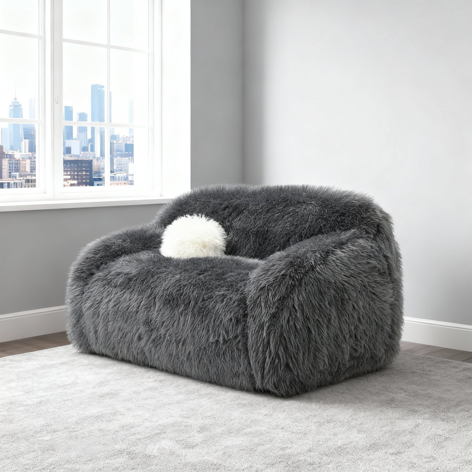 The loveseat is the perfect addition to any cozy living space, be it a living room, bedroom, or apartment. With its soft faux fur upholstery and sleek, minimalist design, it adds a touch of luxury and warmth to your home. The gentle sloped armrests and continuous back ensure a comfortable and supportive spot for two to relax.