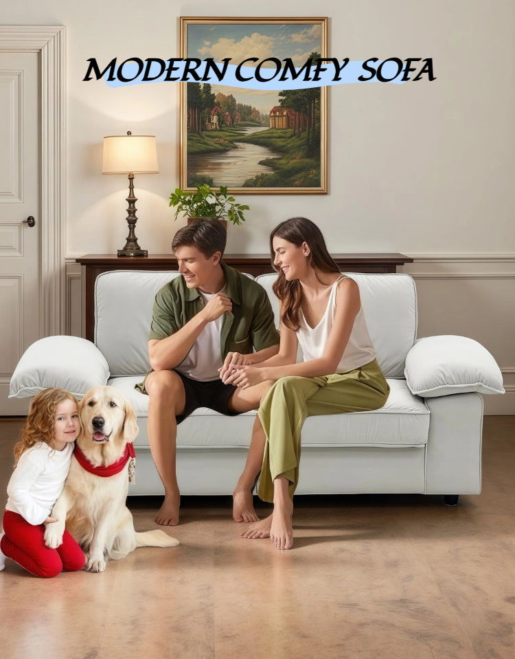 78.74" Space-Saving Storage Loveseat – Cream White Tow-Cushion Contemporary Couch with Hidden Storage for Living Rooms/Small Homes