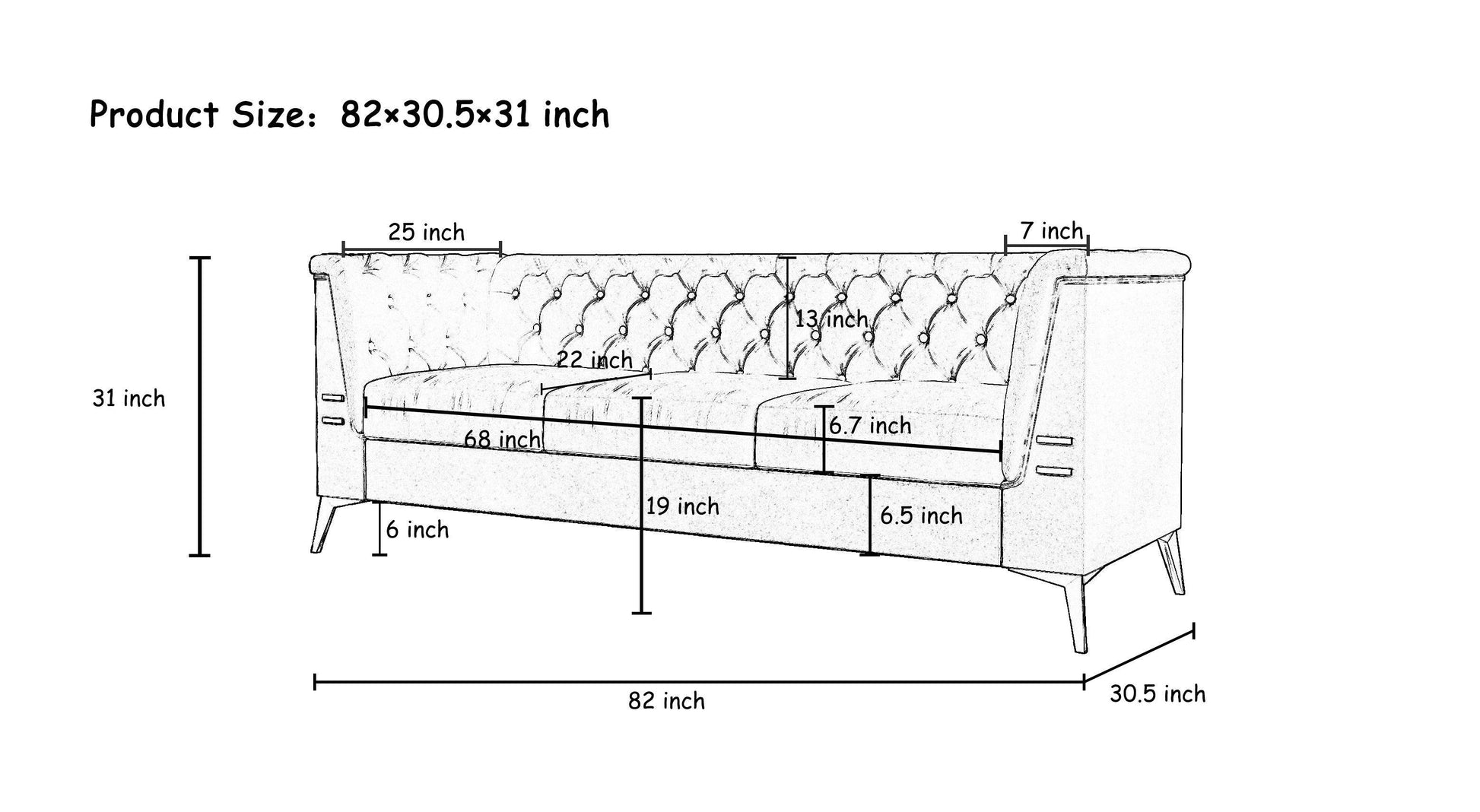 82.7" Velvet Chesterfield Wide Sofa for Living Room