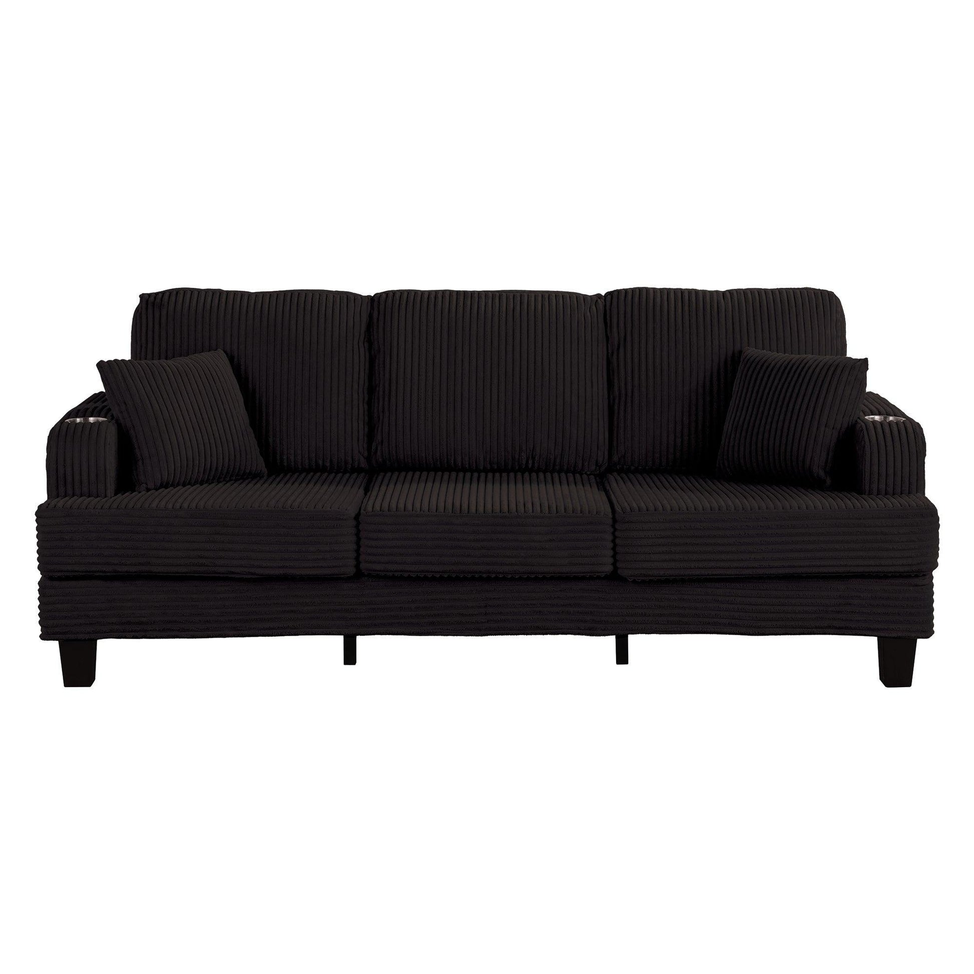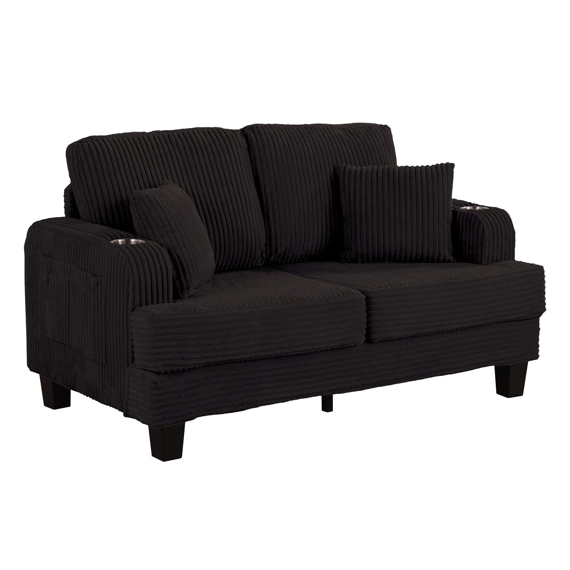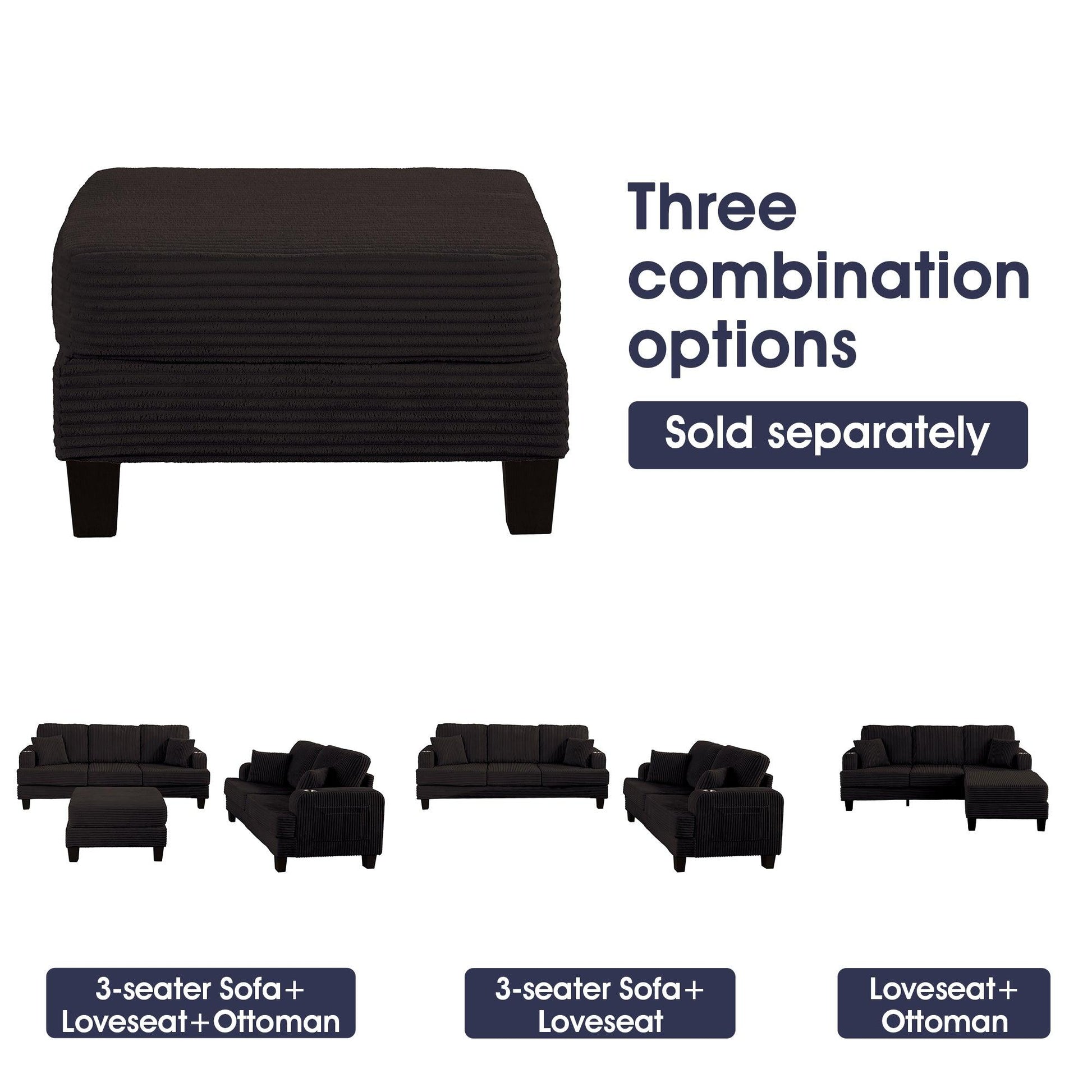 Black 3 Piece Set Comfy Sofa Couch 3-Seater & Loveseat Sofa with Storage Ottoman for Living Room with USB, Side Pockets, Pillows included