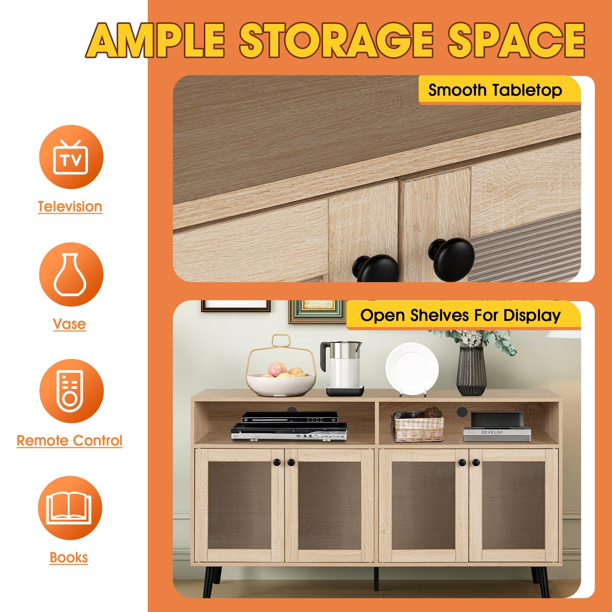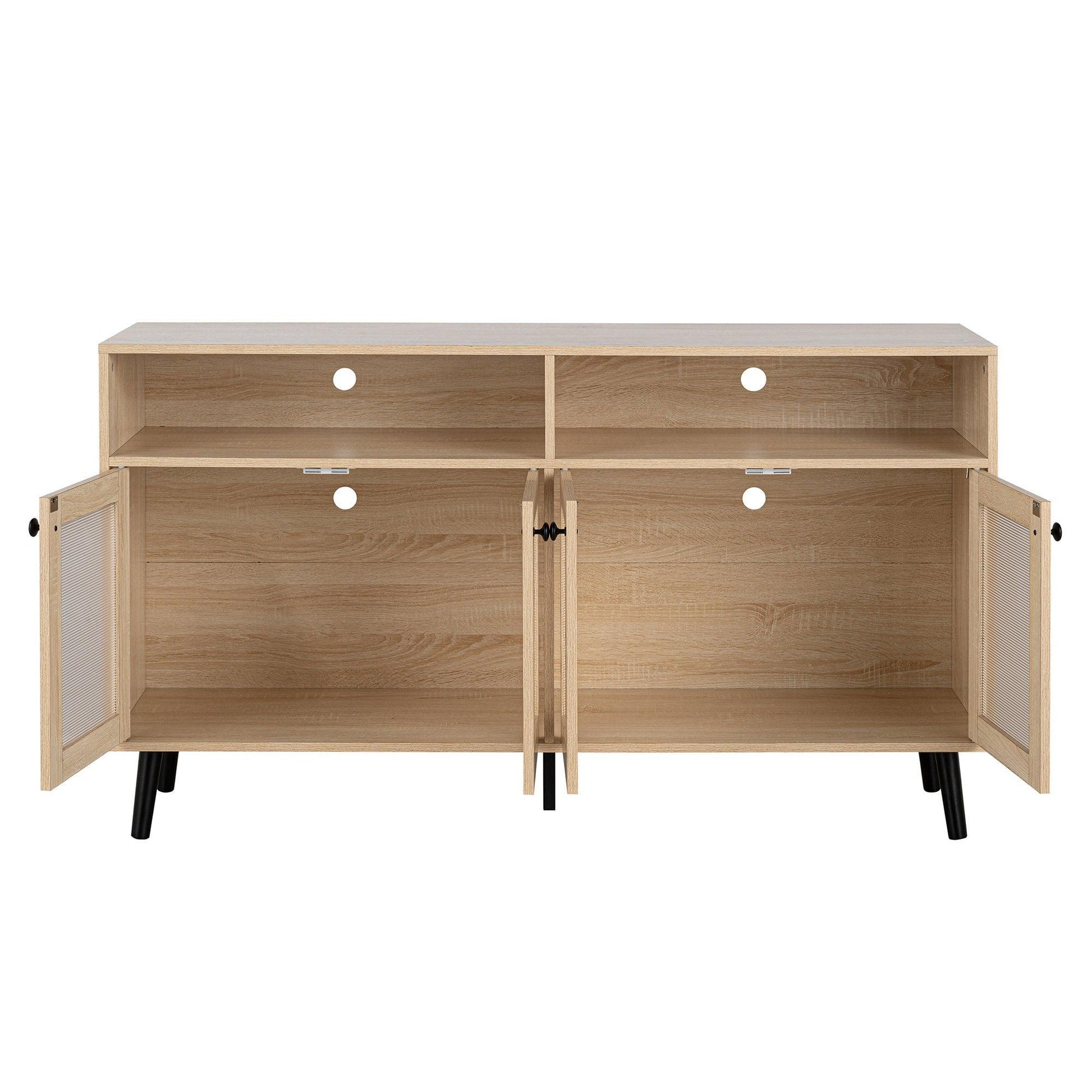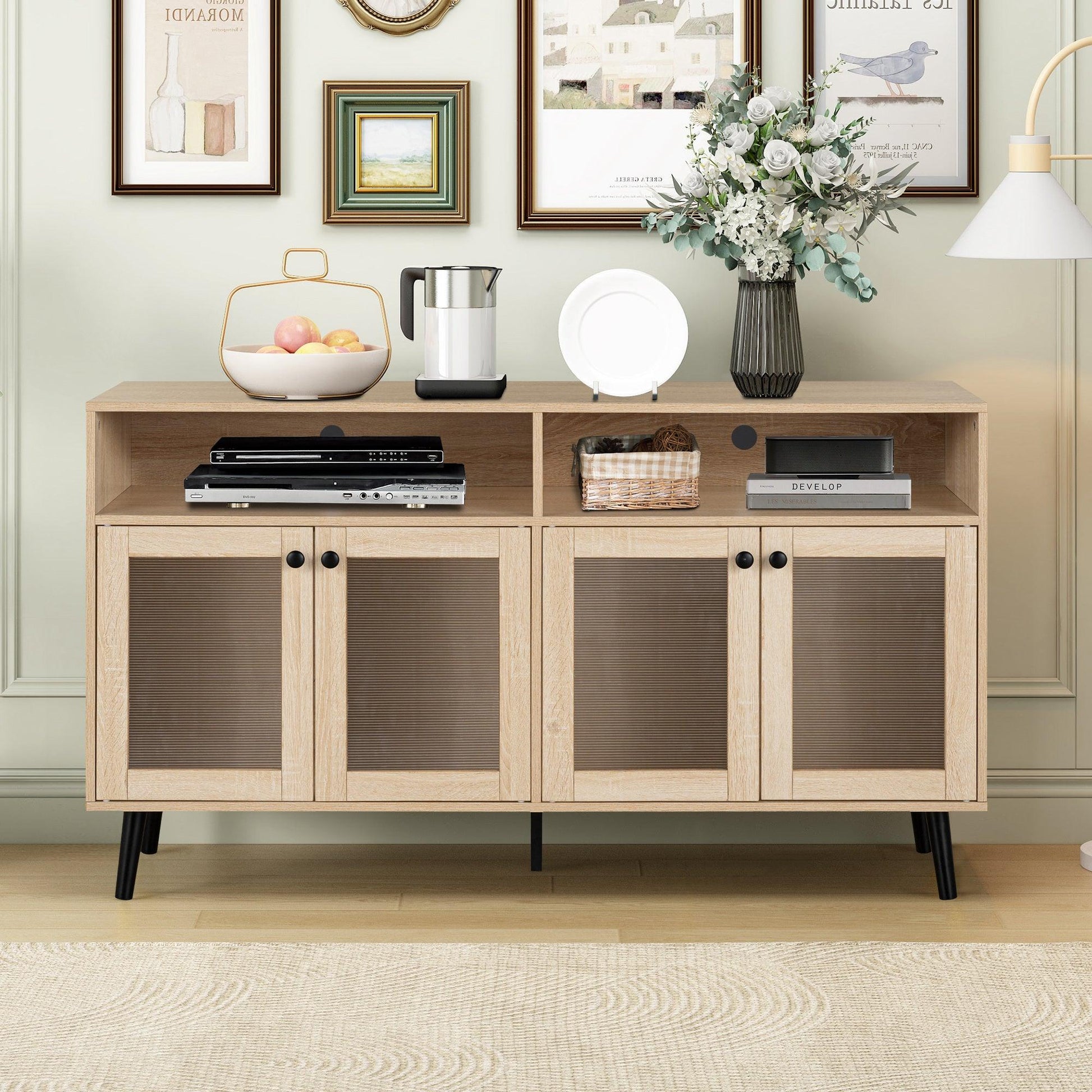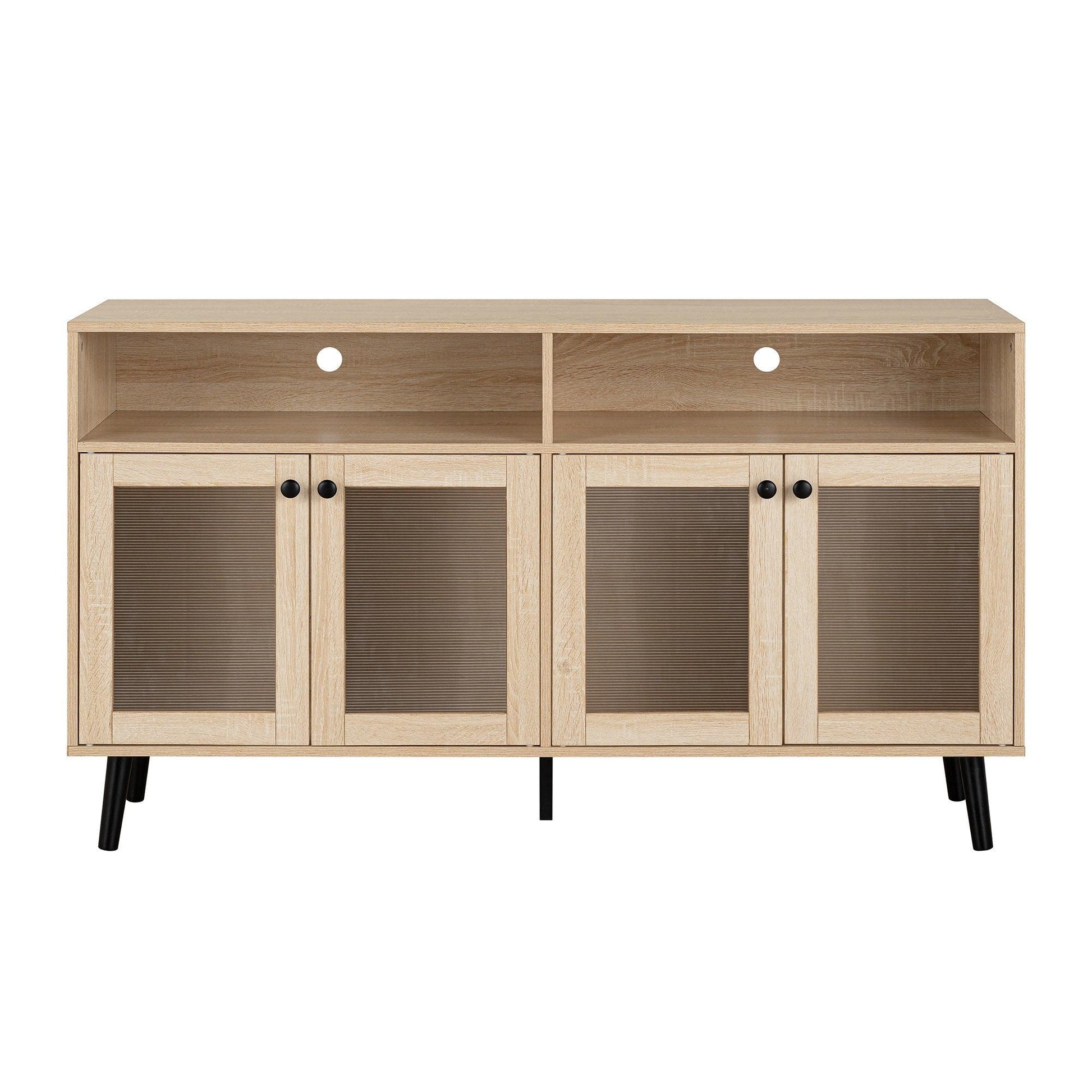 Evans 56 Inch Mid-Century Modern TV Stand with Open Shelves and Cabinets for Living Room, Bedroom