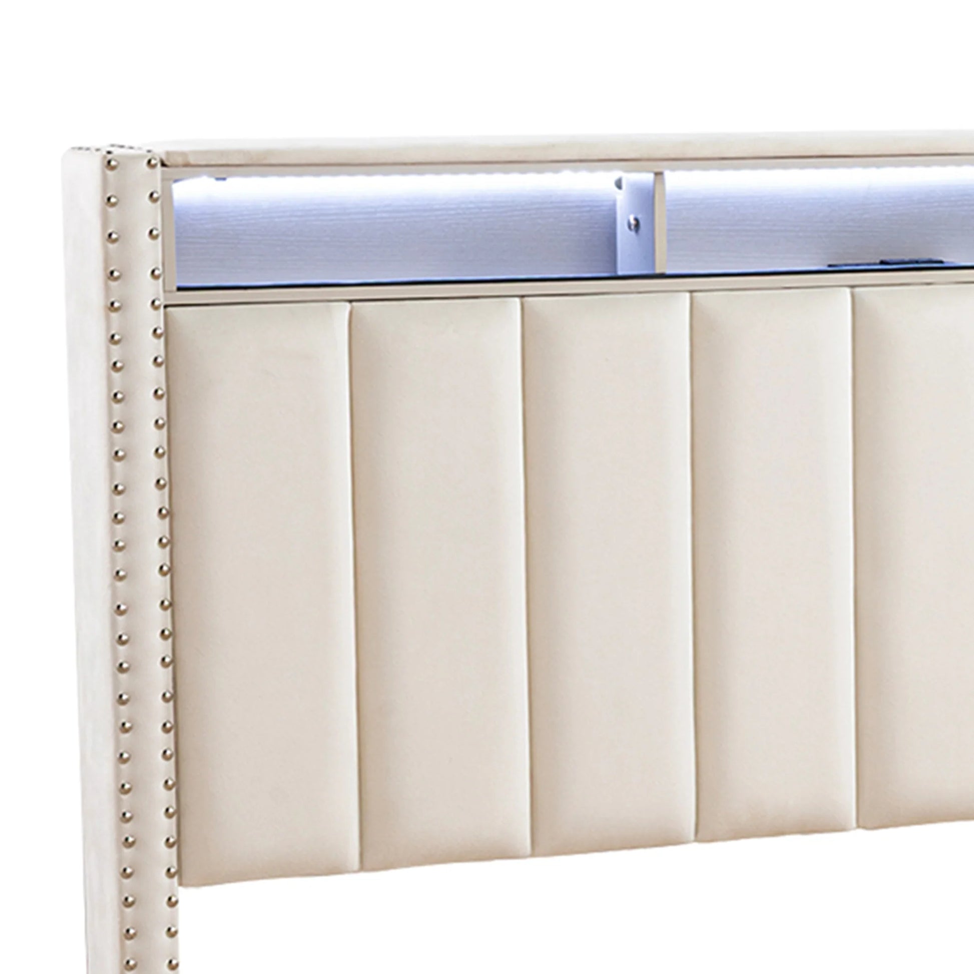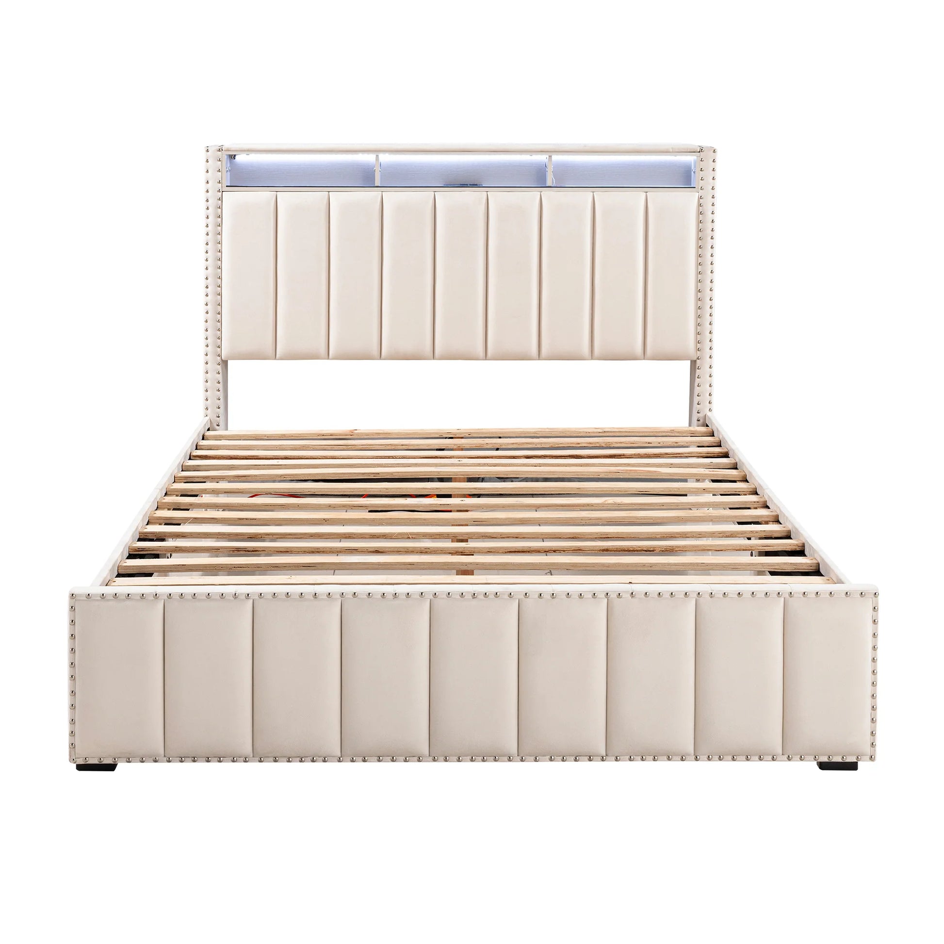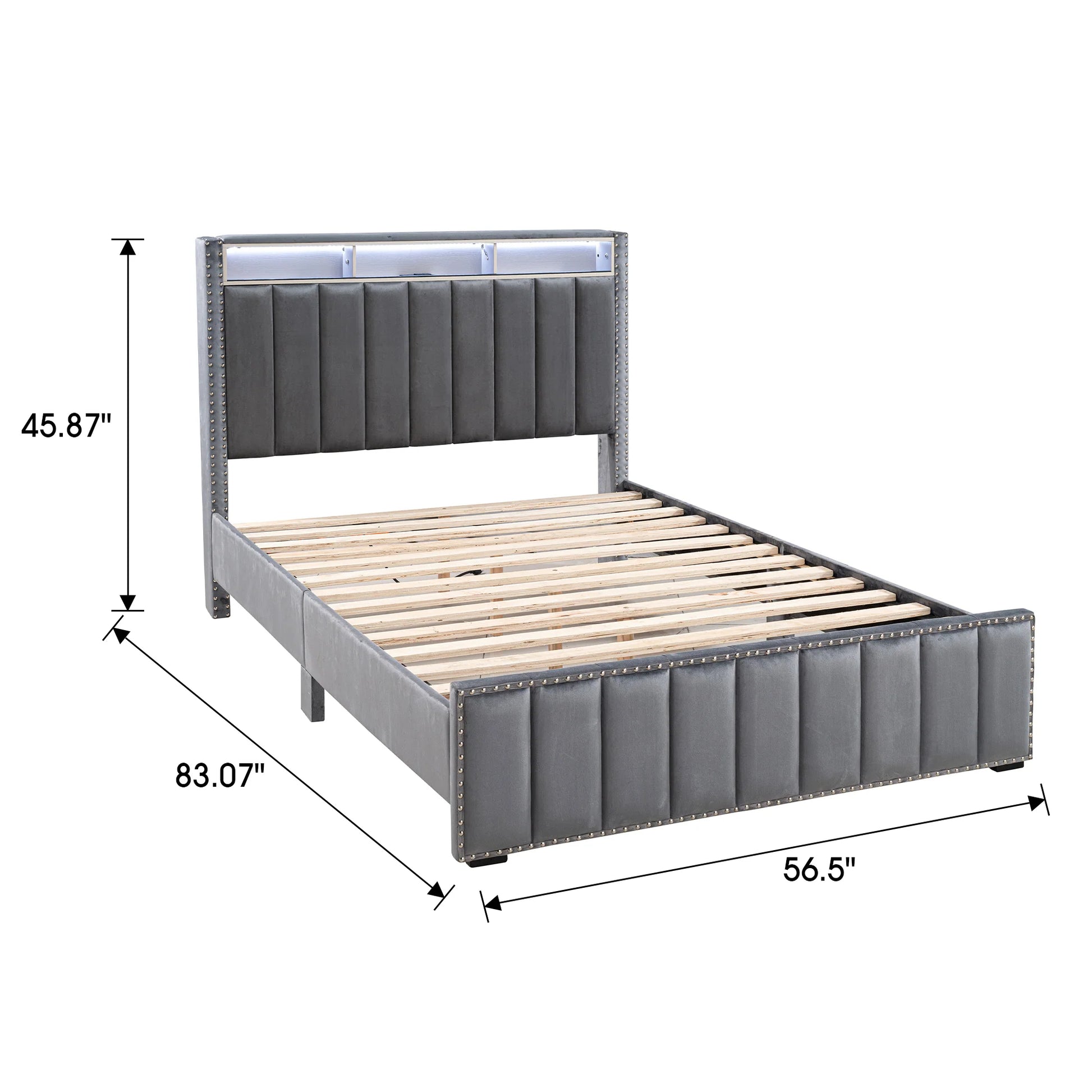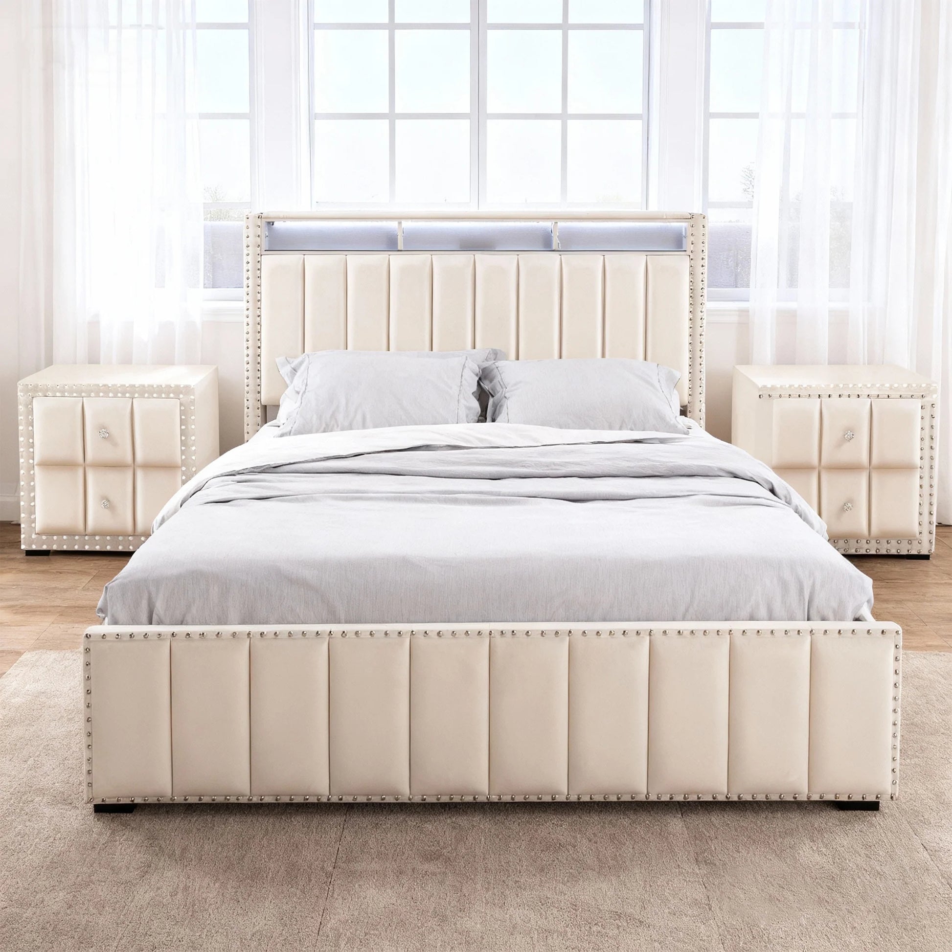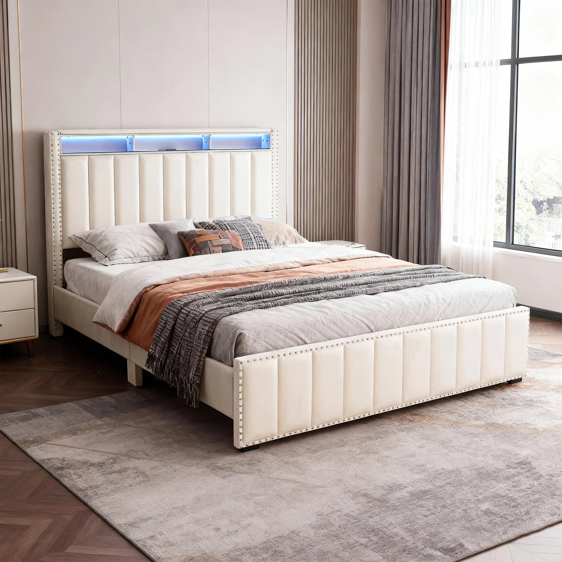 Farese Full & Queen Platform Bed Frame Storage Headboard with LED Light, No Box Spring Needed