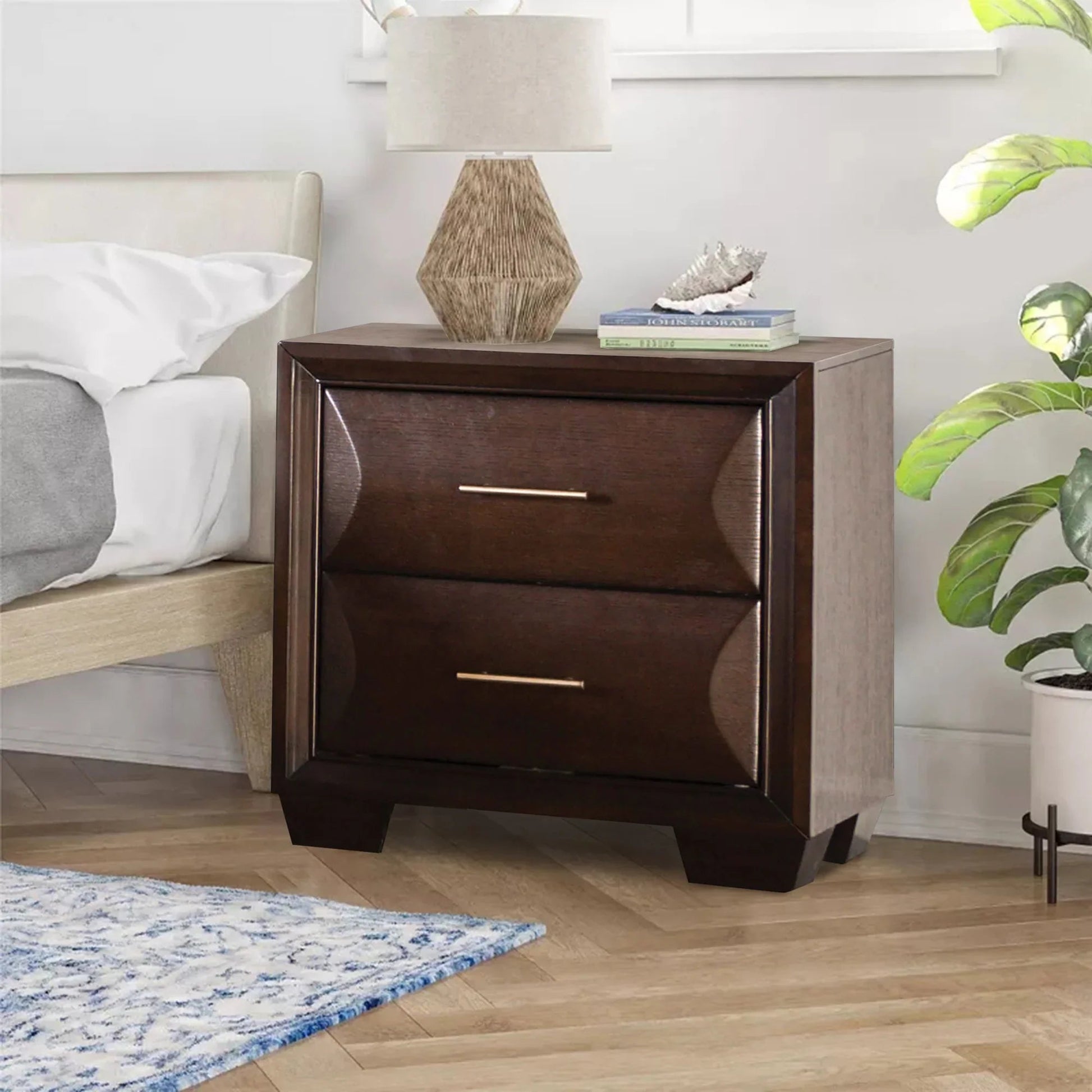 The Chase 2-Drawer Nightstand combines soft elegance with sturdy construction, offering essential bedside storage and timeless style. Available in two color options, its solid wood craftsmanship highlights rounded drawer fronts and sleek bar pulls, making it a stunning addition to any bedroom.