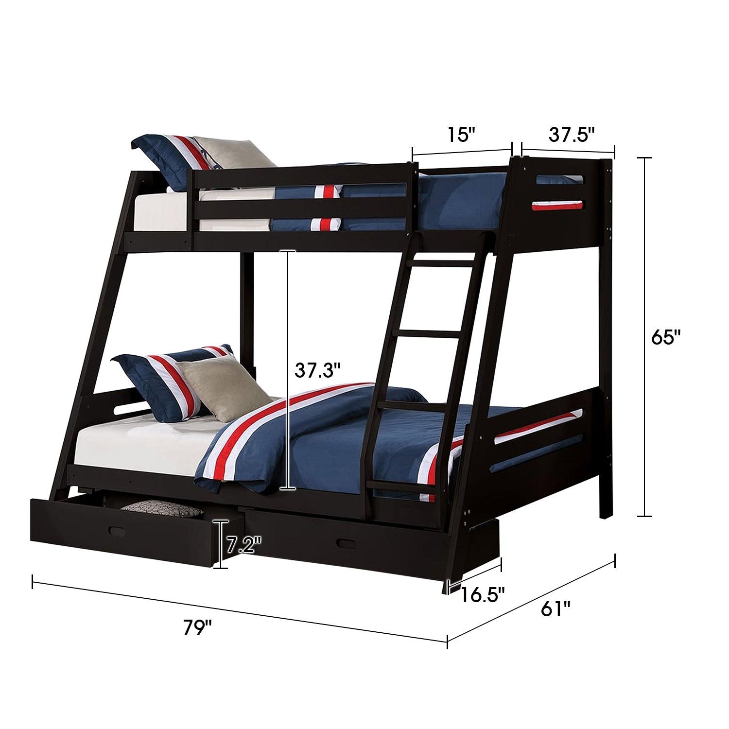 Solid Wood Twin / Full Bunk Bed with Reversible Angled Ladder and Underbed Drawers