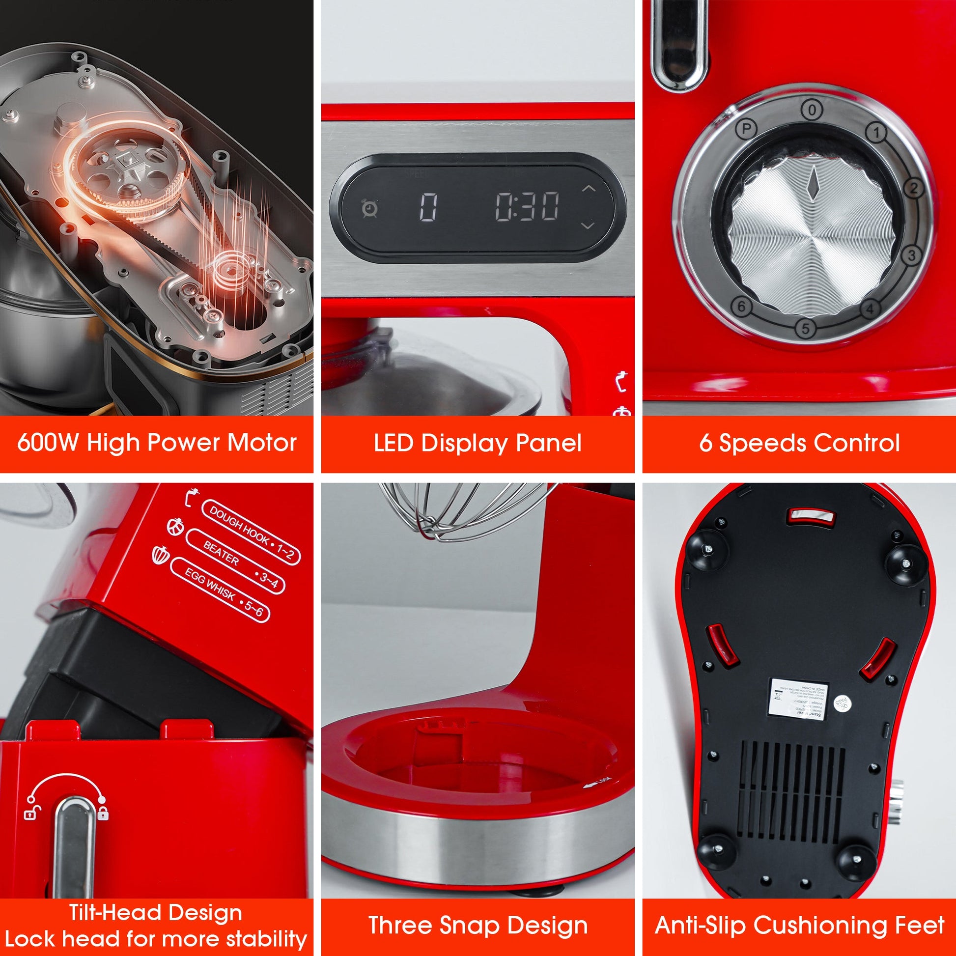 【600W Pure Copper Motor】: A high-performance, durable motor that handles tough doughs with ease and is built for long-term, frequent use.