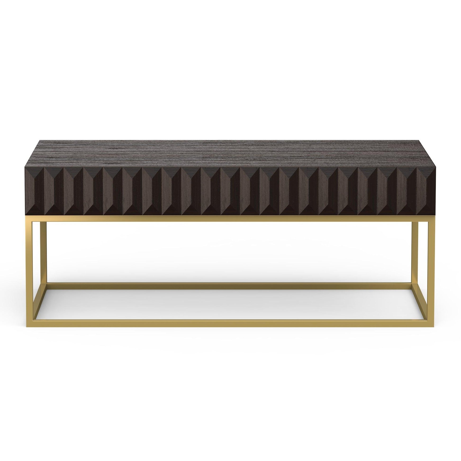 Walnut/Gold Textured Front Panels Coffee Table with Concealed Drawers